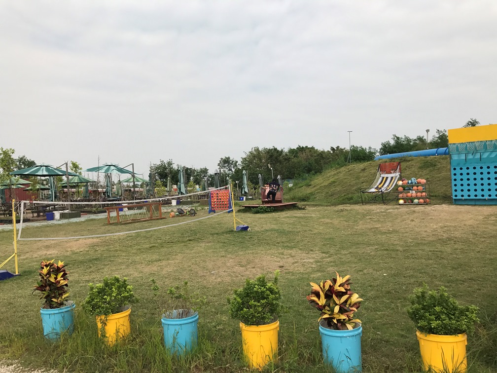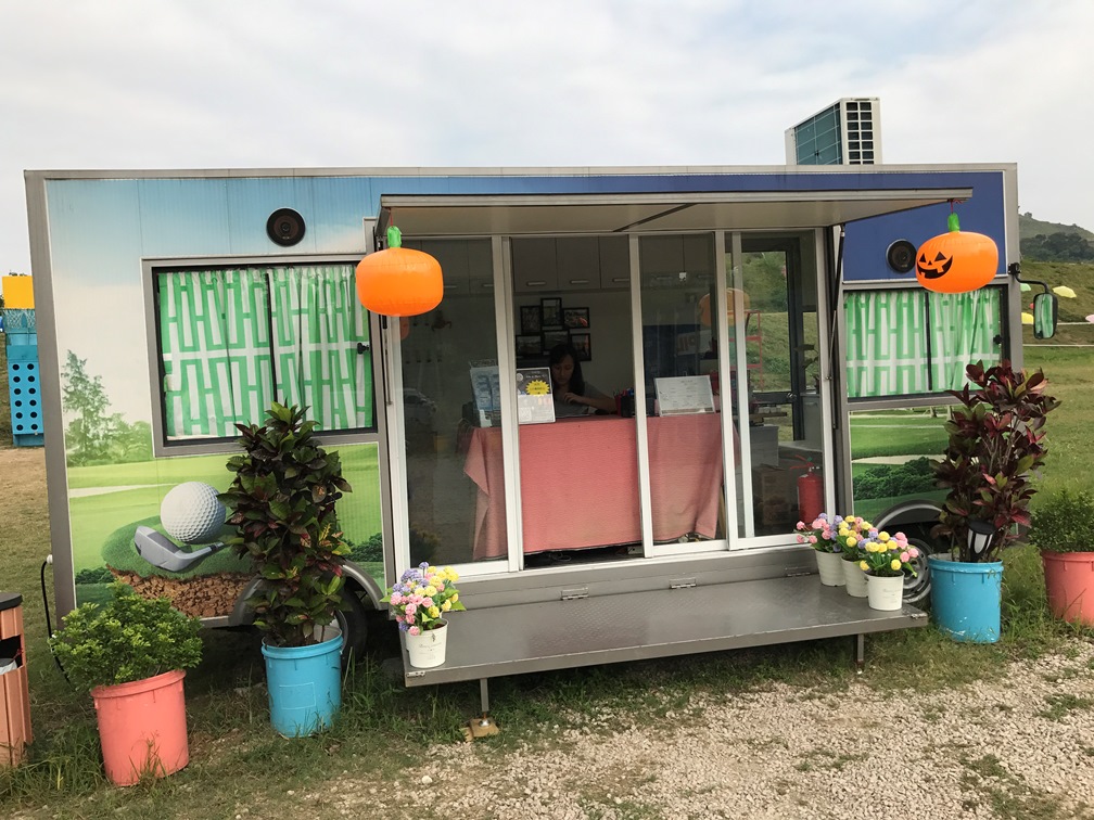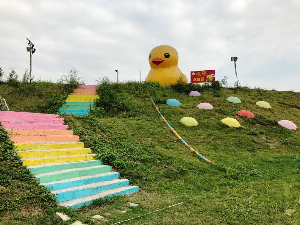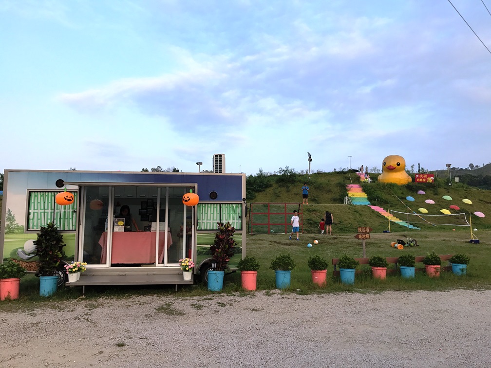 最後,這裡除了是燒烤場外,更有高爾夫球場,高爾夫球場位置於吹氣黃鴨再上的山頂位置,如果想要去練習場練習高爾夫球的話,可能需要點體力的勞動。