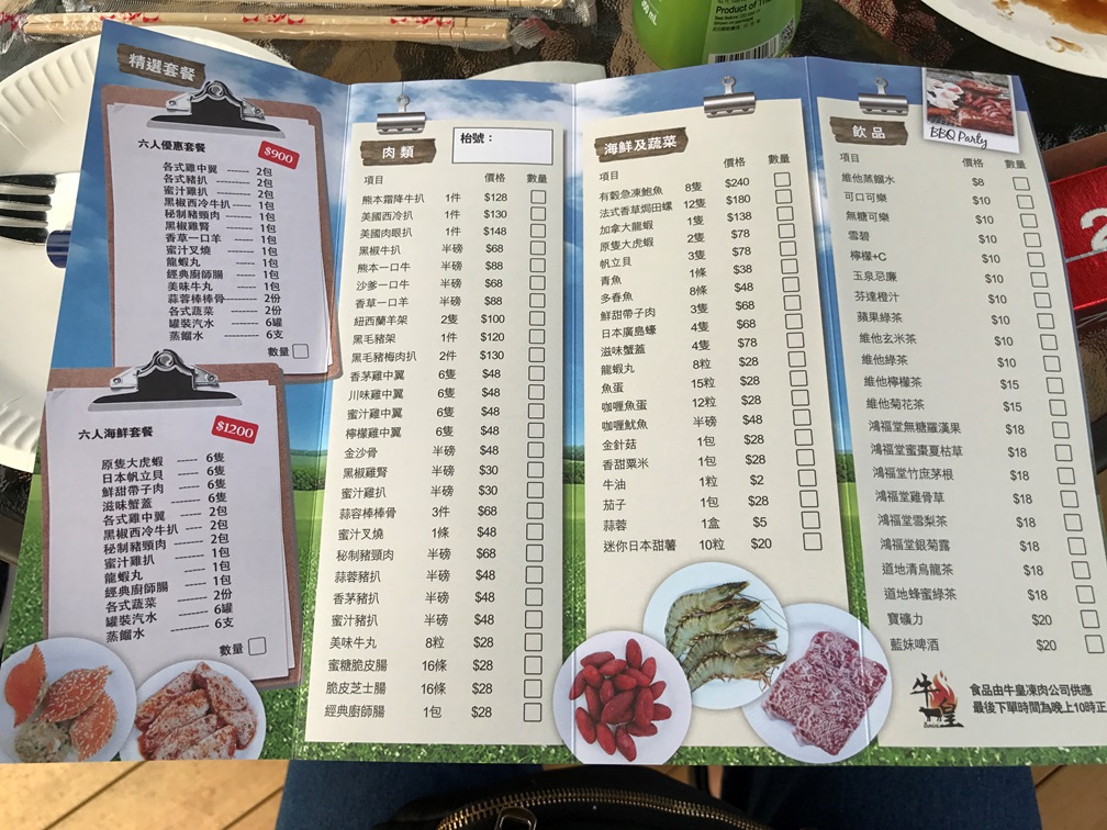 峻嶺主打是燒烤場,所以用餐環境也較為優質,而且媽媽我非常欣賞他們的燒烤爐,可以用網燒或燒烤叉燒, 爐邊又有位置可放用具及食物,感覺亦較安全,真心讚!另外,這裡的燒烤不是任食的,而是用點餐紙選購,然後離場時結帳的。我們當天選了半日5小時燒烤,入場費是$150/位(100cm以下小童免費),入場費用可以全數換取食物(開爐費額外收費$80,包2包炭及基本燒烤工具及餐具)。這裡的食物是預先包裝好密封的,感覺非常衛生!款式選擇及食物味道亦不錯,如果喜歡吃辣的話,個人私心推薦川味雞中翼!