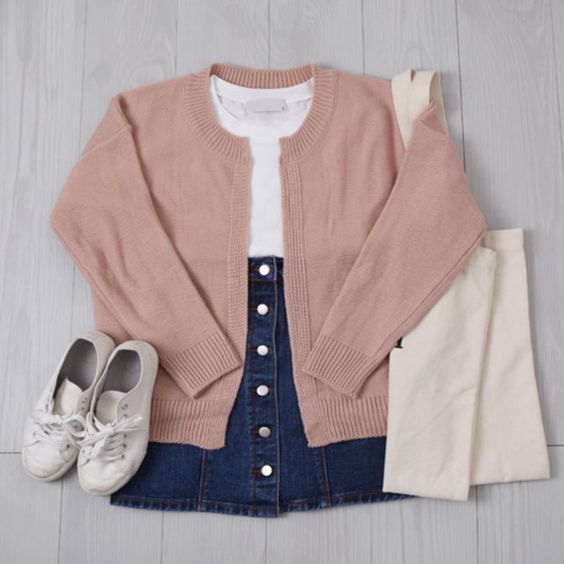 冷的時候穿上薄薄的外套,粉紅色可以增添可愛感!