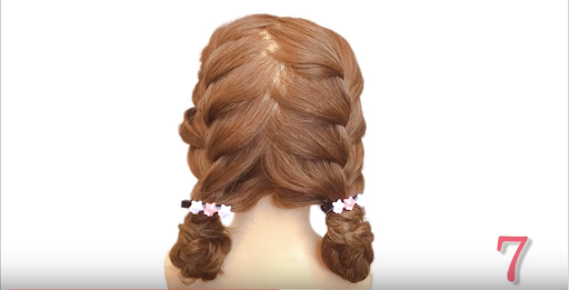 先將頭髮分成雙馬尾並綁起來