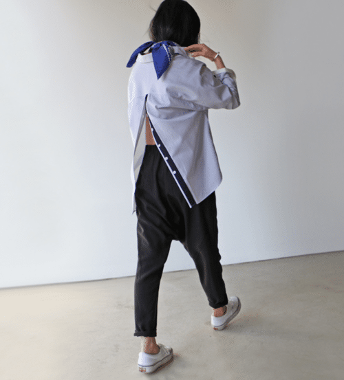 寬褲是大屁股的救星,也可以是災星喔!款式的選擇是非常重要的,版型硬挺、顏色單一、褲管較寬且長度要能露出腳踝或小腿的款式才顯瘦喔!