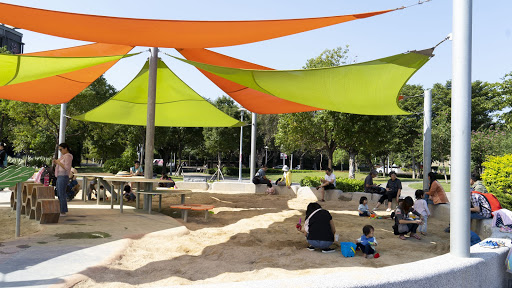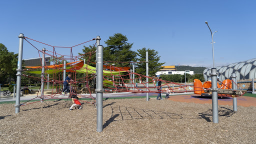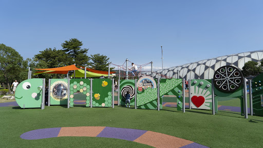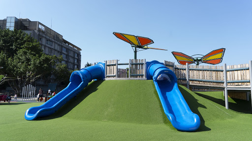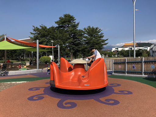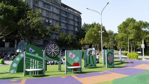 位於花博舞蝶館旁邊的共融公園,是今年才新開的遊樂場喔!