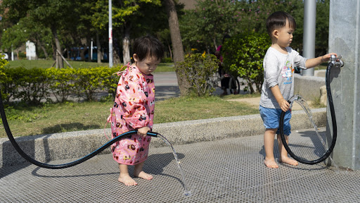 ▲旁邊十分貼心地設計了水龍頭!孩子可以從這邊裝水去沙坑做更多元的玩法,或者是玩累了,大家就可以直接在這邊清潔喔!