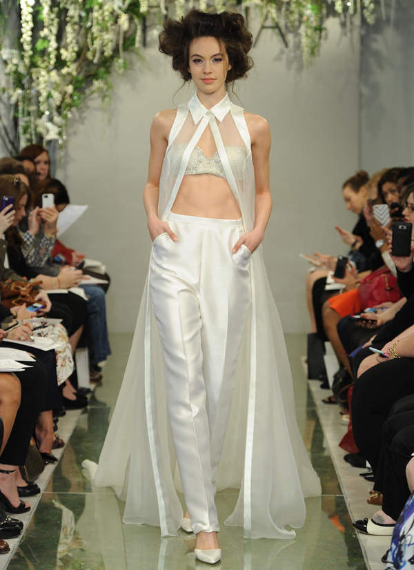 有些女生不習慣太女性化打扮的個性新娘,而在國際婚紗界今年其中一個最大的流行趨勢就是褲裝婚紗。