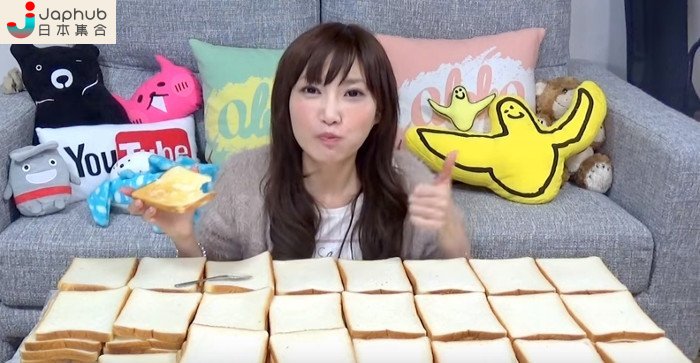 ▼「美女大胃王」木下優香最新挑戰影片,吃下100塊白麵包。