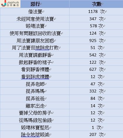 而《多啦A夢》最令人深刻的地方,相信一定是身為主角的大雄經常闖禍;有搞鬼的日本網民遂計算他多年來的惡行,並炮製出「大雄劣行統計表」。
