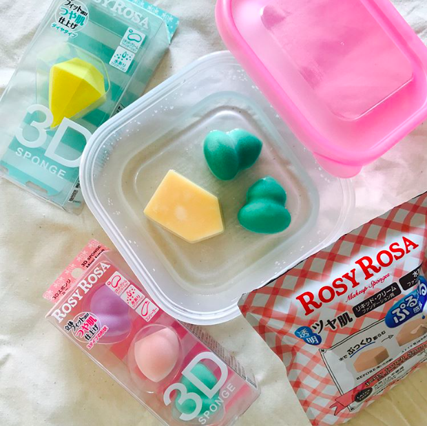 1. 前一晚,把上底妝用的海綿,用水浸濕。