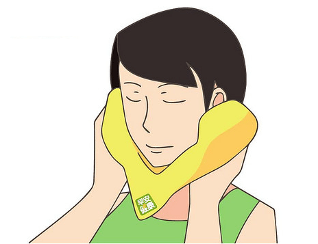 3. 將毛巾摺成三角巾的形狀,將兩端覆蓋住耳朵,揉揉耳朵上下移動一下,可促進血液和淋巴循環喔〜