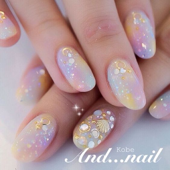 手殘女孩推薦款!只需要把兩隻手指塗上星空感就多了~其他的都以白色為主就好了~(很唯美感GET)