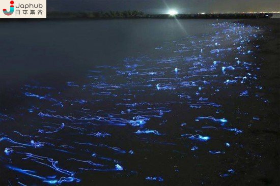 夜間在一些郊外或者海邊時,我們一般都要帶上一枝電筒,或都發光物體,但在日本富山縣的海邊就有一個難得一見的奇景——一片藍海。
