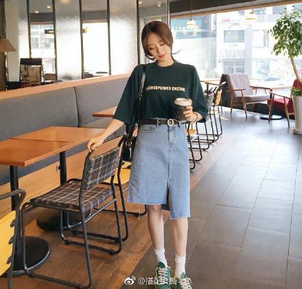 3. 牛仔裙 + 鬆自tee 也是必備配搭,將鬆自tee束入牛仔裙內可以有修飾身型作用!