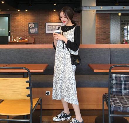 1. 少女碎花連身裙仍然是大熱款再配上一件長袖素色tee,就算春夏款也變成秋冬配搭!