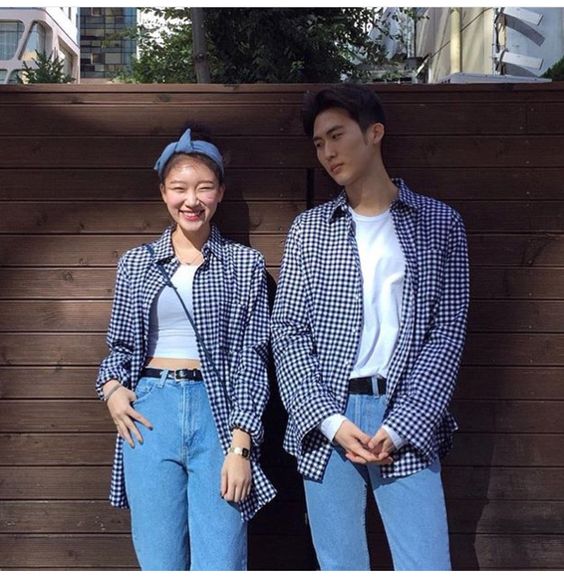 格子款式走在街上很引人注目啊!而且感覺又很活潑,一看就知道你們是情侶了~