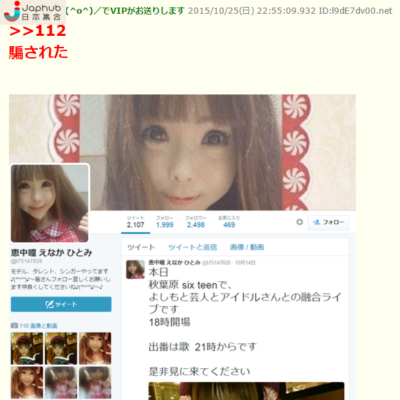 而經過了幾天的沉澱後,今天在日本的網絡上亦終於有人將「26歲地下偶像」成功起底,並貼出了她個人的Twitter帳戶給網友們品評一下。