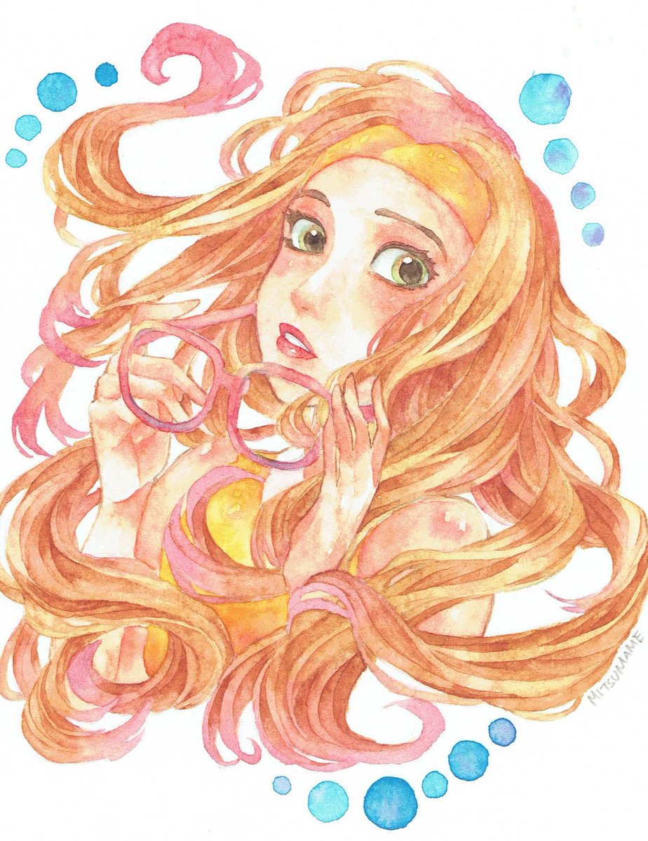 長髮公主!!好美呀!很喜歡這個水彩畫風~感覺很甜蜜又幸福!