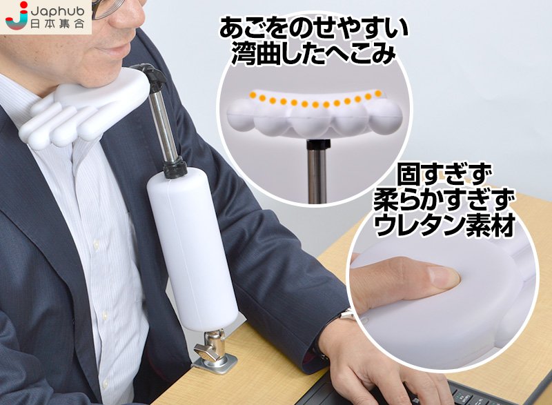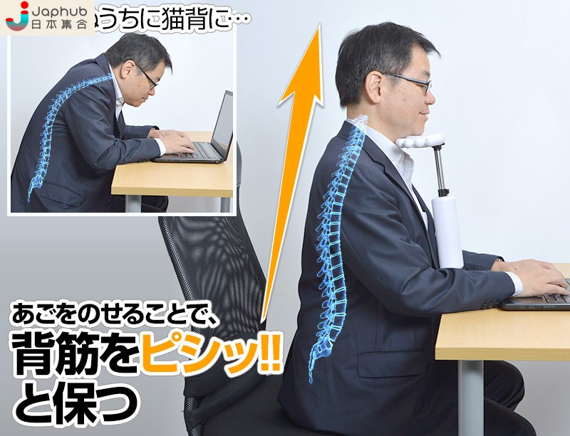 原來這隻伸縮手手是用來改善駝背。長時間使用電腦,不知不覺間就會彎腰靠前,姿勢不良導致肩痛、腰背痛。如果有伸縮手手,就能把下巴放在假手板上,並靠它支撐自己的頭部,就能保持腰骨挺直。