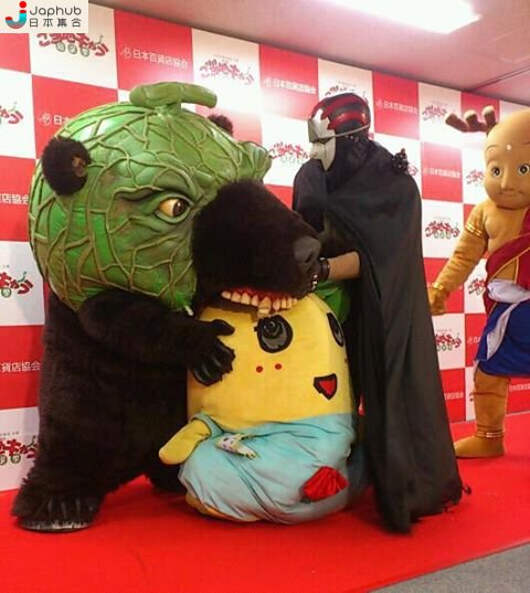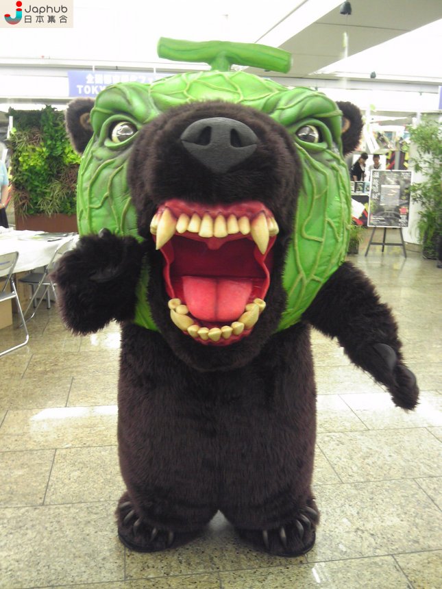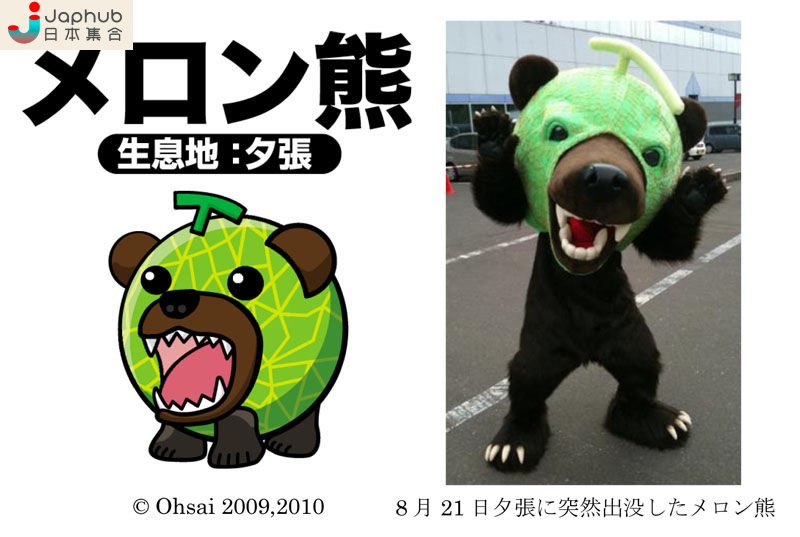 說到北海道,一定會想起夕張蜜瓜,以此作為吉祥物絕對是好點子。「メロン熊」就是蜜瓜與熊結合而成,「北海道物産センター夕張店」手信店的吉祥物。構思メロン熊的若狹翁斉指,當初沒有人贊同他的構思。雖然實體版的メロン熊太可怕,常弄哭小孩,但在聖誕節,它還是會出沒在市內的幼稚園,派發禮物。