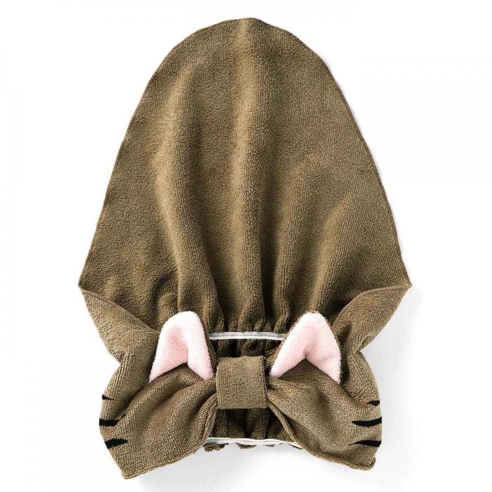 貓耳頭巾背面,可以看出頭巾能夠包著濕漉漉的頭髮,避免弄濕衣物〜