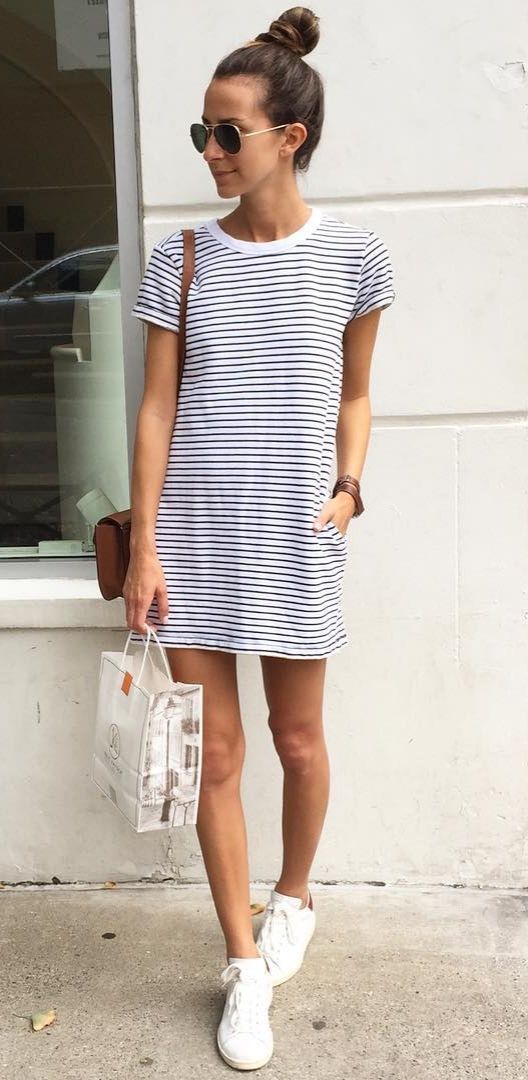 T恤裙+球鞋:運動休閒的年輕女孩風