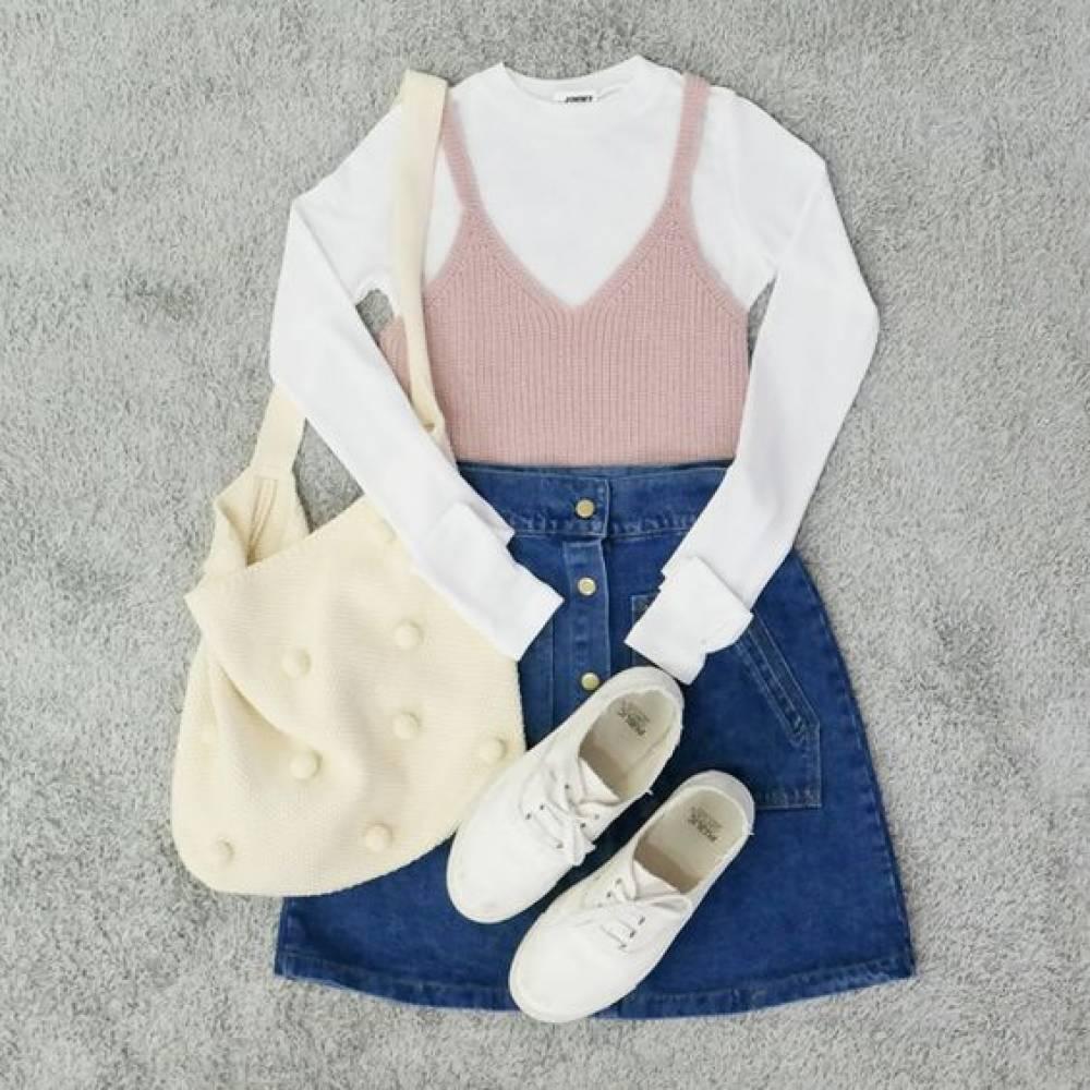 粉紅,牛仔,白色=清新的減齡裝