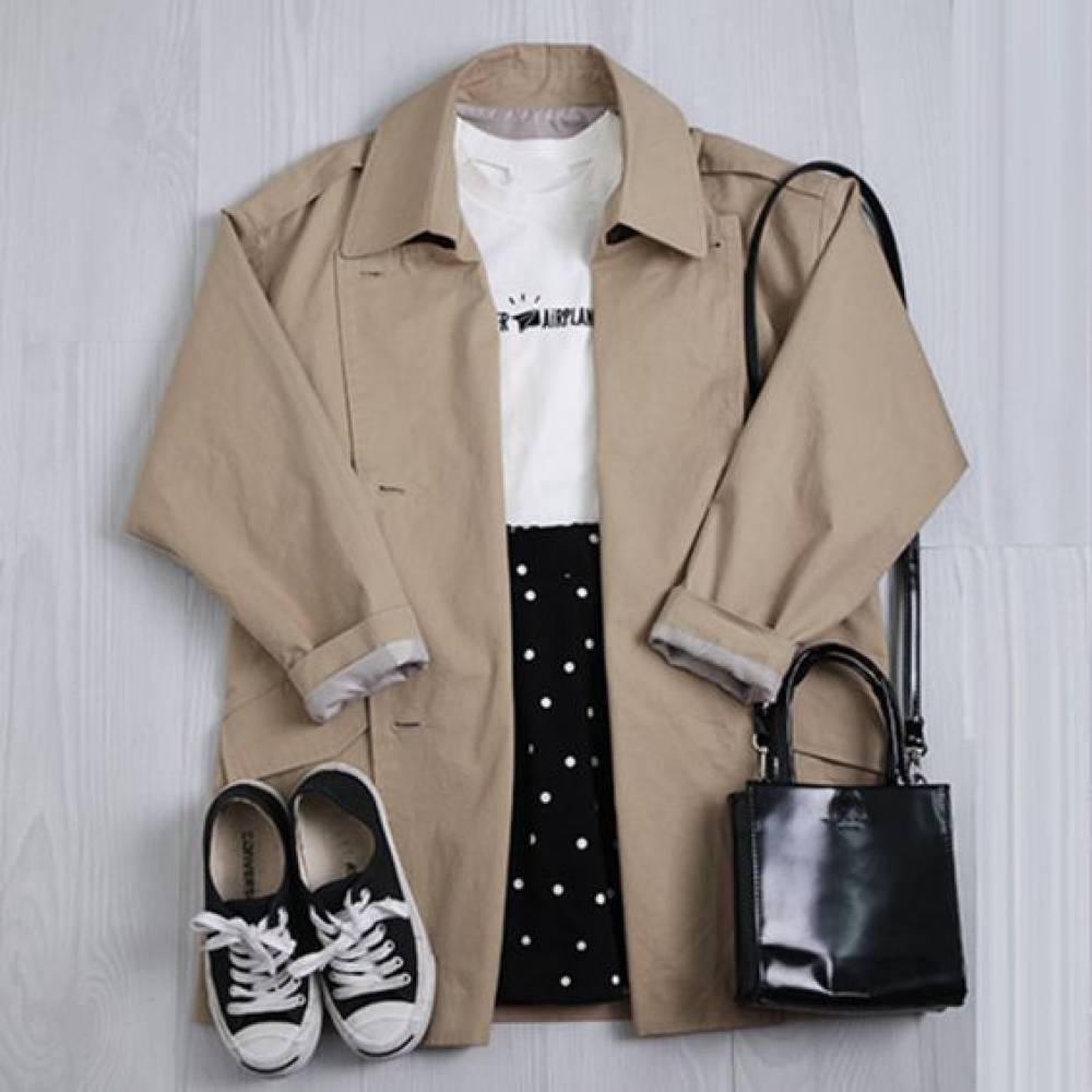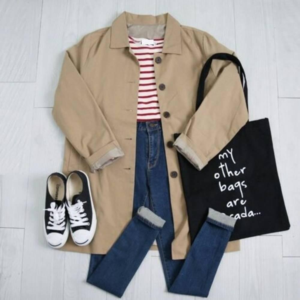 長風衣襯搭修身的牛仔褲,在韓國街頭很常見啊~