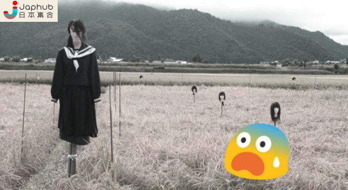 假若您們有去過普通的農田,對於製作稻草人,農民通常也是非常的「hea」,只是在田裡築起一個貌似人形,以黑色膠袋作為主體的東西就足夠了。但今天在日本當地,網友jump_up_ 卻在郊外發現了一個看上去非常恐怖的農田,驚嚇程度能夠媲美兇殺案現場!