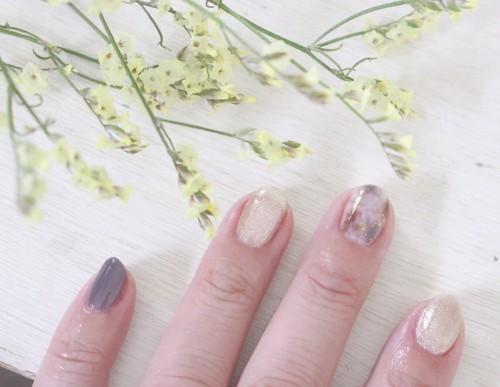 秋天的大理石指甲款與其他不同之處是加入了金色作點綴~