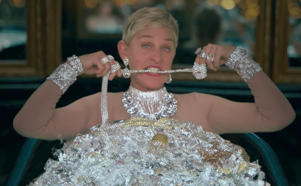名嘴Ellen DeGeneres一向以惡搞和風趣幽默風格令人發笑,最近以Taylor Swift的新作《Look What You Made Me Do》又來惡搞一番!她搞笑的說道,自己本來也是tay tay的mv中其中一名主角,不過最終被剪掉!當中 Taylor躺在鋪滿珠寶的浴缸的一幕,Ellen 就正正躺在她對面,又扮作二人打電話,Taylor Swift集合了自己的小隊,Ellen也有自己的小隊!雖然只是用特技把兩人剪接在一起,可是仍十分搞笑!
