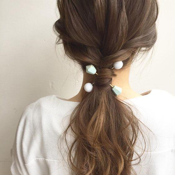 在綁馬尾上加入 「珠珠髮棒」也很漂亮!