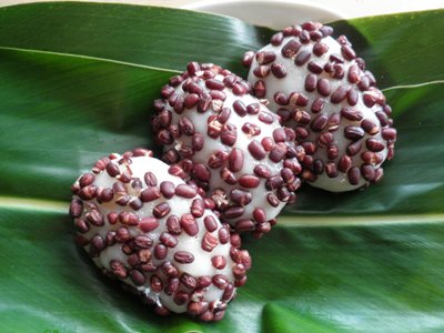 ふちゃぎ是賞月的小吃,用紅豆包著年糕的蒸物。