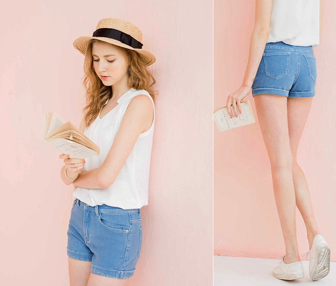 A字版型的短褲,選擇褲管寬鬆和挺身的材質便可以完美修飾臀部及大腿的肉肉啦~