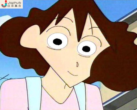 ▼ 網友首先取了小新媽媽美冴作為例子,原本眼睛是以黑色作為外圍,然後中間留白。