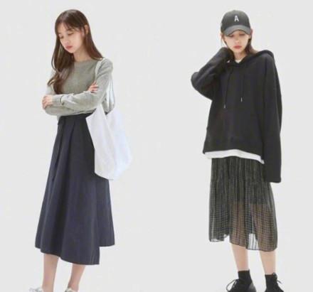 雪紡裙配上衛衣可以搭出街頭混搭風的風格〜