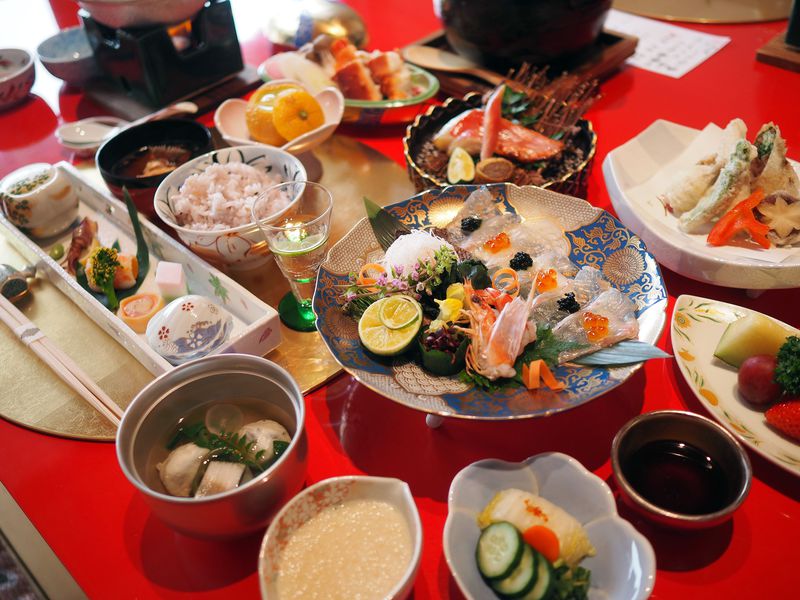 德島縣的特產也很多,在鳴門捕捉的鯛魚、金時蕃薯、海藻、酢橘、阿波牛等,都在這一道會席料理裡。