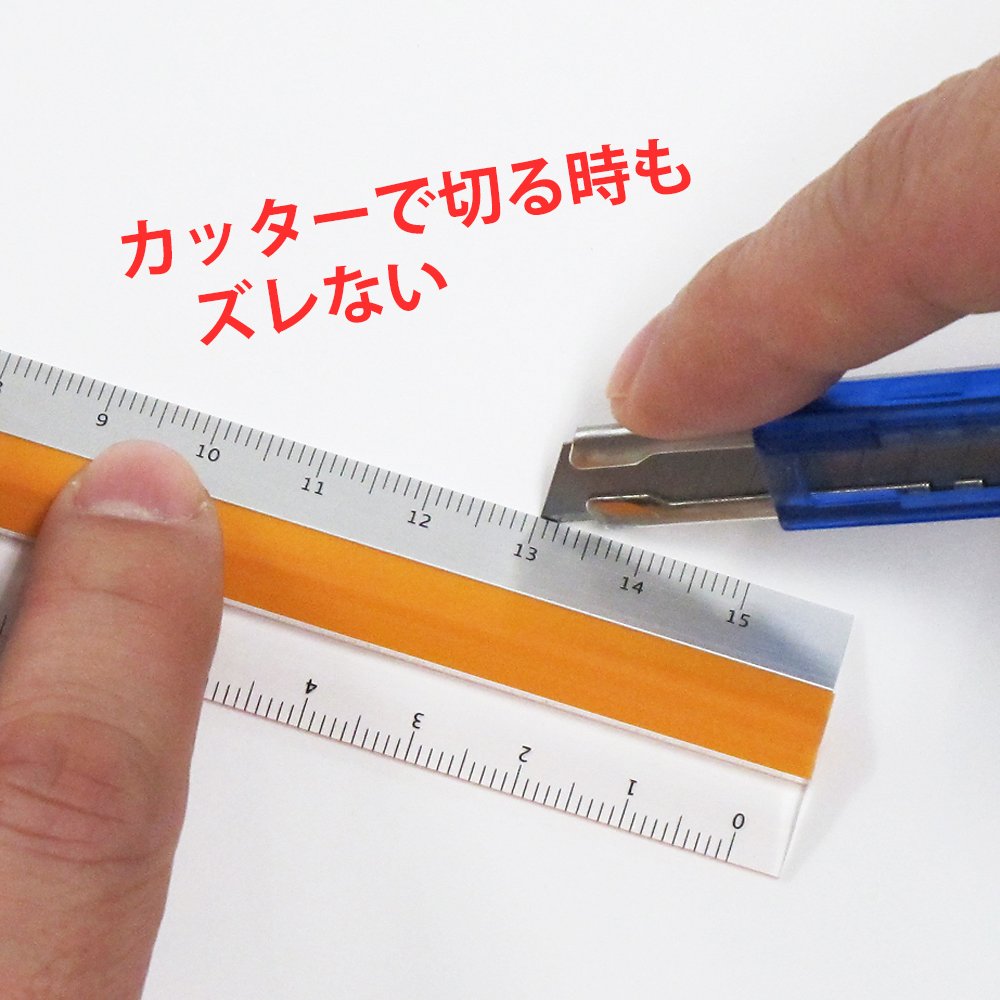 一般的間尺都會滑走,很容易畫歪直線。但用這把間尺時,只要輕輕按著橙色的部份,就會停在該處。