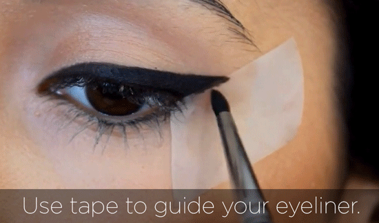 要畫出猫眼妝但是又怕畫不到上揚的弧度?可以黏一張膠紙在眼尾,畫的時候眼尾會自然被跟膠紙的形狀向上揚~成為一個完美的上揚猫眼啦~小提示,SIS以用膠紙先在手背上黏幾遍,令黏力減弱!因為眼部週邊的肌膚很脆弱所以減低受傷的機會~
