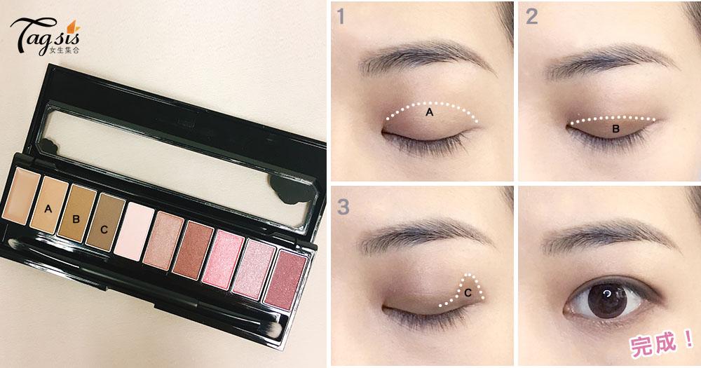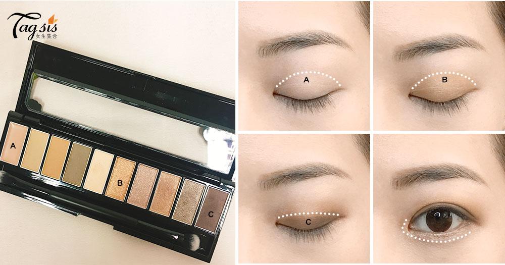 Step3:在眼尾位置加深眼影顏色 (C) ,眼晴放大的效果就更明顯了!