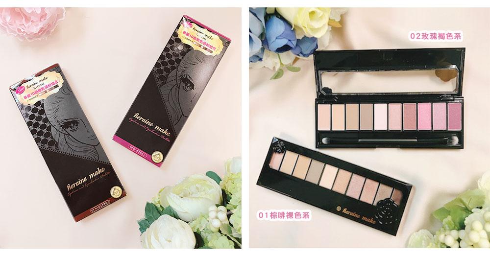 今年大熱的「粉紅桃花妝」其實難度很高的喔!因為一不小心就會化成眼睛被打腫一樣似的!所以眼影的選擇是關鍵所在喔!像是Heroine Make的華麗10色眼影眉粉組合 的02玫瑰褐色系眼影就剛剛好,不會太紫也不會太紅!