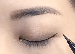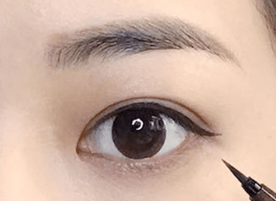 Step4:眼線方面,使用了Heroine Make纖細眼線液全新的深啡黑色,會有自然而分明的明眸效果喔!畫法很簡單,從眼頭畫向眼尾,再往外平拉就可以了!眼晴立刻變得又大又圓,給人萌萌的感覺唷~~