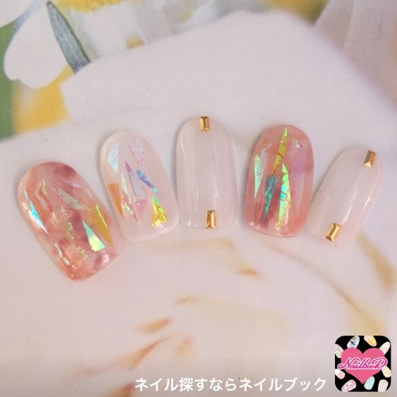 夢幻感玻璃美甲,這一款是把以上有的元素都集合在一起了,重點是留白的地方比較多,看起來才不會有累贅感~