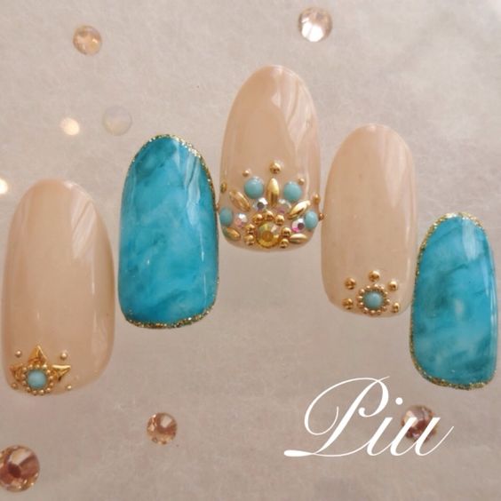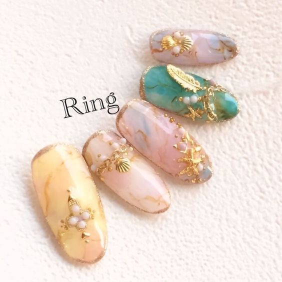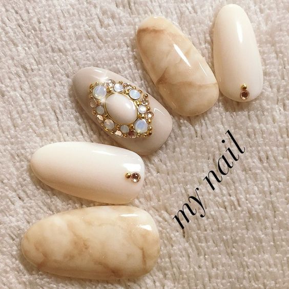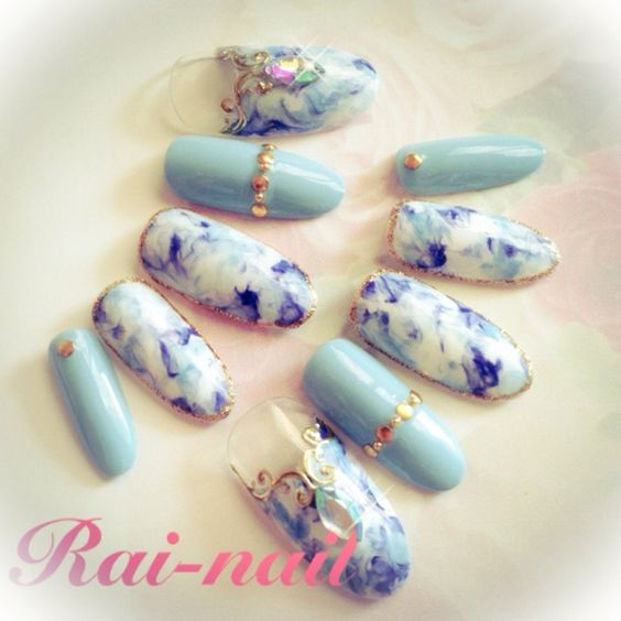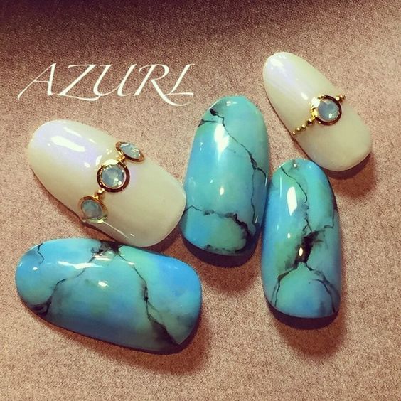 小編看到這款指甲的時候完全被燒到了!大愛這個款式啊~小編覺得這個礦石紋其實和雲石紋有點相似,但是各位SIS知道怎樣分辨嗎?礦石紋是在指甲上有難分的顏色分佈,而雲石紋是有明顯的線條,像閃電一樣!SIS留意一下下面的礦石紋,都是由同一個色系的顏色組成哦~白色是最有仙氣而且最適合做礦石紋的顏色,如果SIS有打算去修甲的話不妨考慮一下哦~