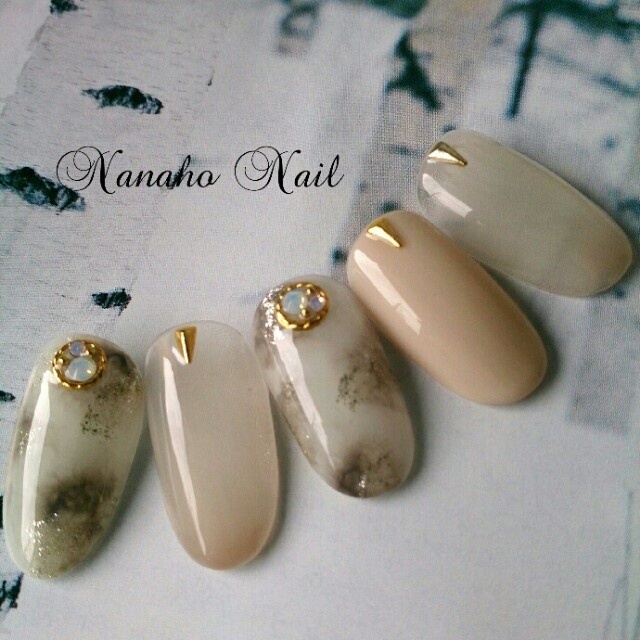 白色系列!很多時候都會在礦石指甲上加上金色的閃石~
