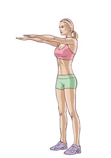 這組動作可燃燒全身脂肪,技巧是在跳躍同時要緊縮腹部,著地時可強化背部肌肉,舉手時則可鍛鍊到肩膀肌肉,這組動作需做10次。