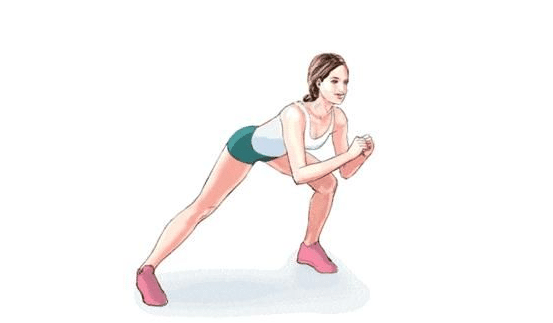 側向箭步蹲主要鍛煉腿和臀,將重心向左側或右側移動,並且彎曲重心置放腳之膝蓋。