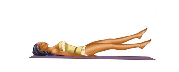 腹部鍛煉的主要動作,平躺著,然後慢慢抬起雙腿至呈現45度。需做3組,每組10次。這動作可瘦腿,也能減小腹。