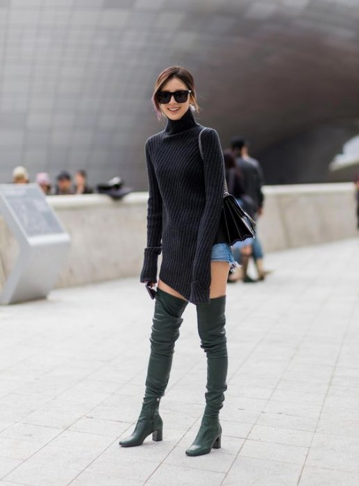 不要覺得過膝長靴只給辣妹穿的,因為它真是修飾身材比例的好幫手,過膝長靴的搭配,會讓人認為你的膝蓋更高,小腿更長更細,自然顯得你身材比例優越!