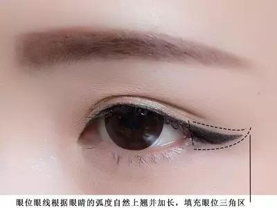 眼線會連到下眼尾的三角部分,眼頭的拉長以及眼尾誇張的翹度比較適合化大濃妝的時候才化哦~