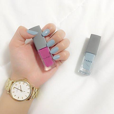 想要簡單一點的色彩,塗上Three的水藍色指甲油已經很出色了〜