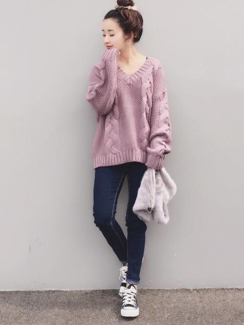 如果想要臉看起來小一點,那麼V領毛衣是你的最好選擇,這樣可以讓你稍微修飾一點臉型。而且記得要選領口寬一些,大V的毛衣,效果就更比顯呢!而且大V領也很適合肩膀寬的女生。