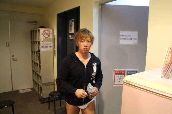 差不多要出場了,所以他先去洗澡和穿好內褲準備。